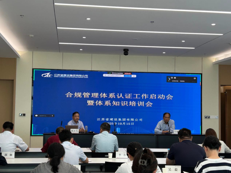 10 月 15 日下午,建設集團舉辦合規管理體系認證工作啟動會暨體系知識培訓會,會議邀請方圓標志認證集團江蘇有限公司技術總監劉